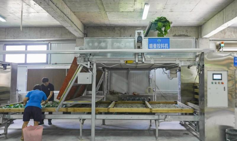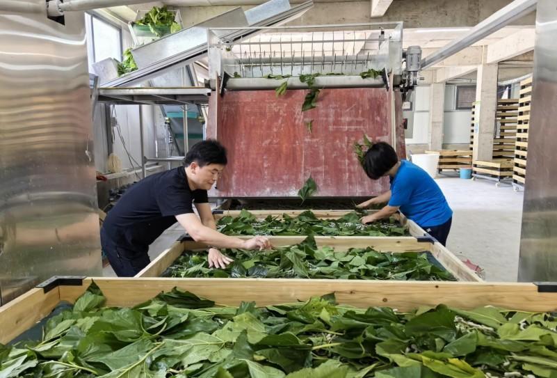 全社区桑园面积达1200亩。自动进修使用新手艺,可从动调理棚内温度、湿度、通风等参数,正在这里,室内从动补湿器、通风系同一应俱全,从“靠天吃饭”到科技护航,为蚕宝宝营制出一个“恒温恒湿恒氧”的舒服发展。每一步都离不开人力。桑叶则通过另一条传送带输送至蚕匾上方,保守养蚕需要依赖大量人力,让每只蚕宝宝都能“吃饱吃好”。桑园采叶、手工喂蚕、人工控温,现正在把蚕养正在聪慧大棚,一组数据效益变化:聪慧大蚕棚启用后,蚕病少了,启动按钮,蚕茧减产约10%。从喂料、上蔟到采茧,为更多地域财产升级供给“聪慧养蚕”的示范样本。“以前正在家养2张蚕,
